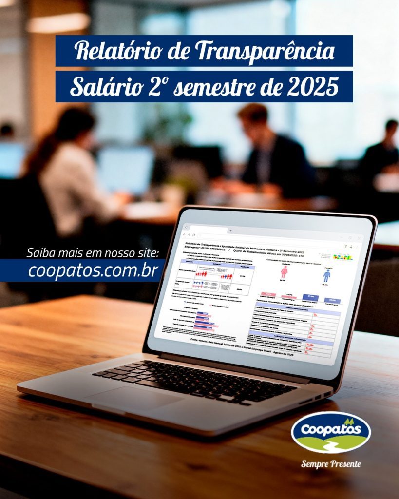 A Coopatos reafirma seu compromisso com a transparência, a equidade de gênero e o respeito às leis trabalhistas. Em conformidade com a legislação que trata da igualdade salarial entre mulheres e homens, disponibilizamos o Relatório de Transparência Salarial referente ao 2º semestre de 2025. O documento apresenta dados salariais consolidados por gênero, além de informações […]